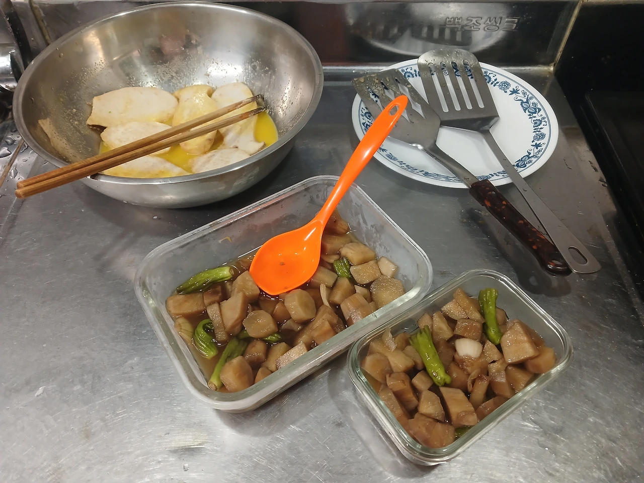 끌어 구부엌 뒤에 임시로 옮겨 파쇄할 공간확보)