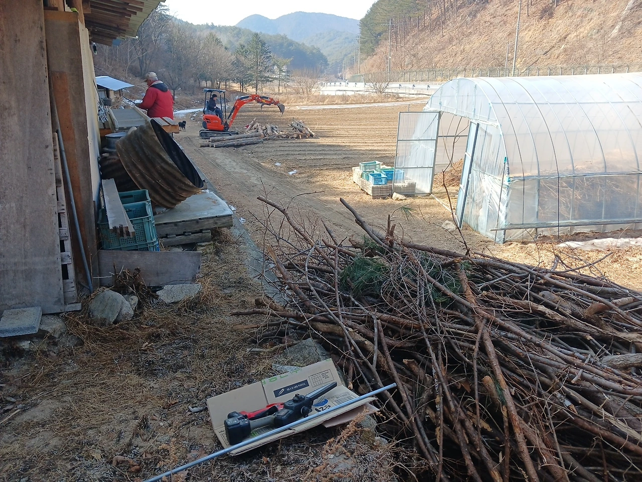 (큰 밭에 빼둔 참나무 땔감용에서 아까운 건 고추말뚝