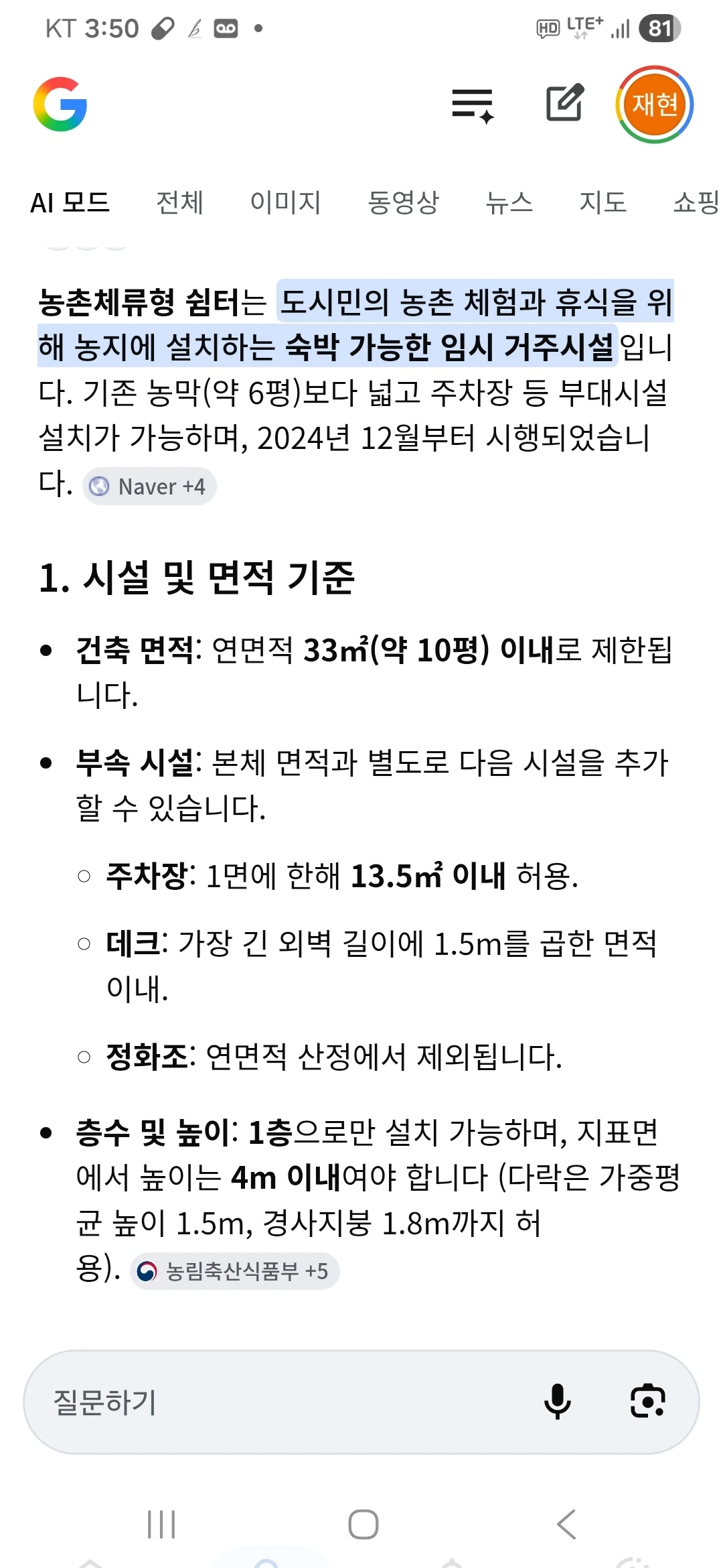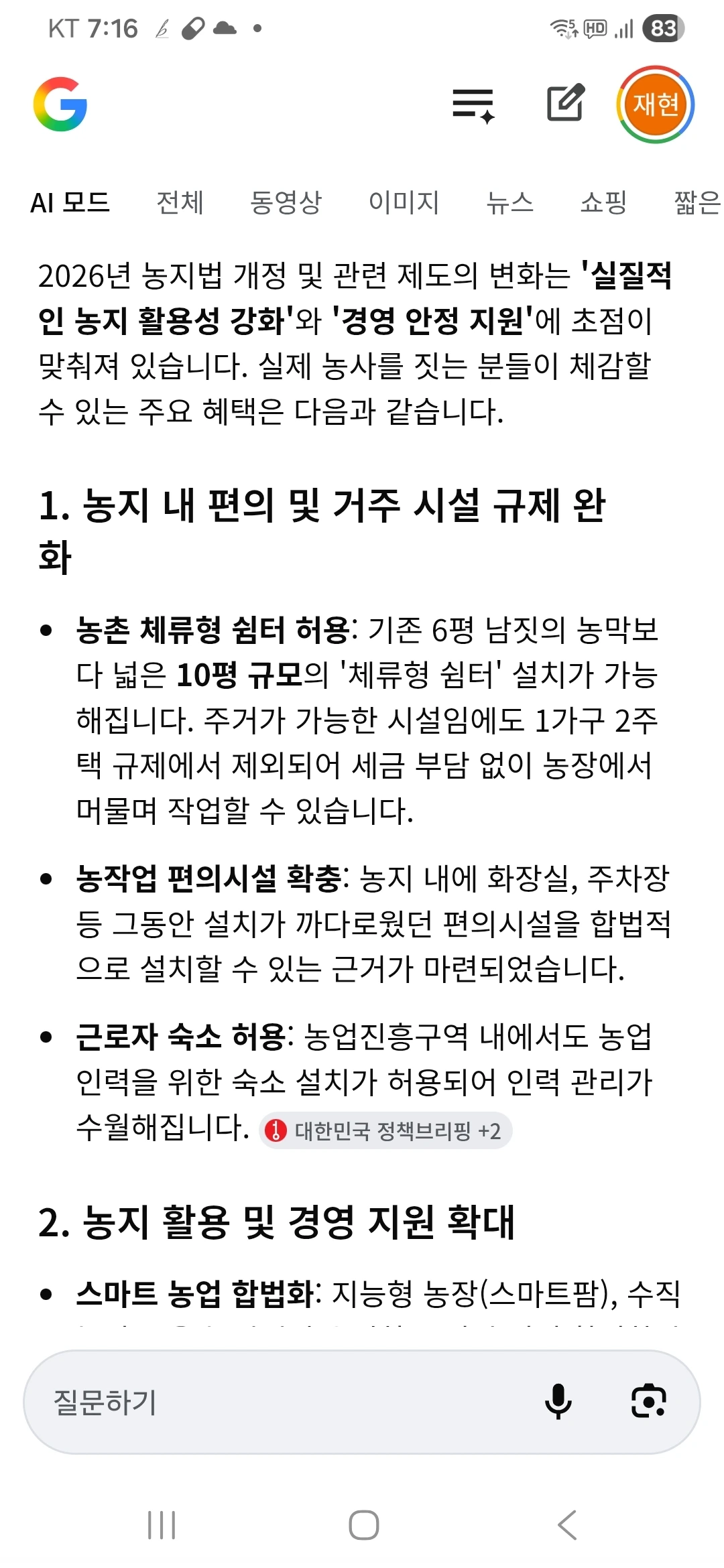 1) 가자미 미역국/고구마 동치미 2) 농가 체류형 쉼터