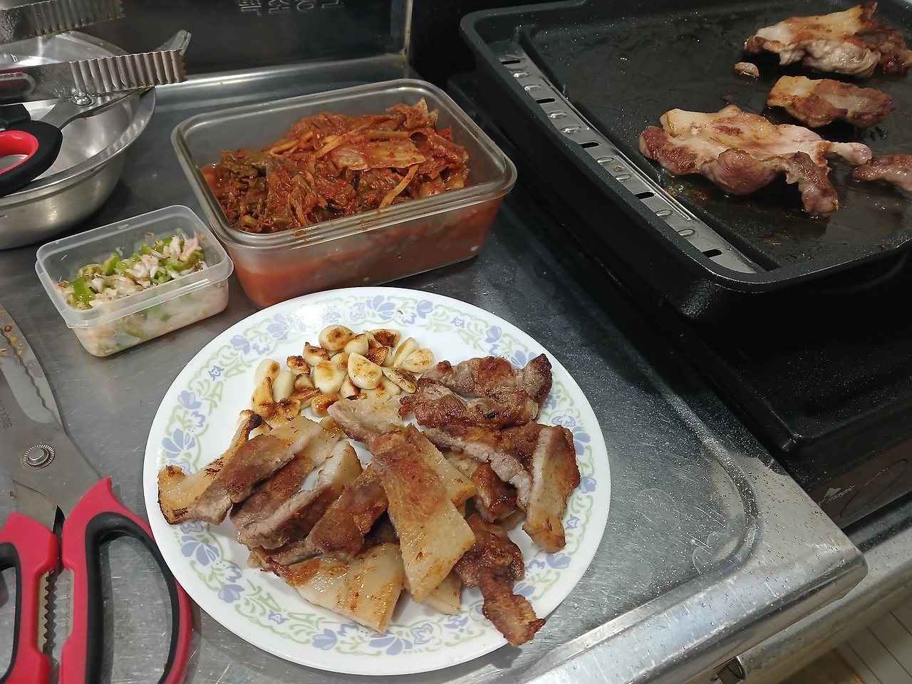 과자 2개와 참으로 먹을 빵은 남겼고 라면 안 먹어 버릇하다 다시 먹기 시작하니 그 편리함에 자꾸 찾게 되어 일단 멀리 치워두기로 했다.(마트 돌려줌)