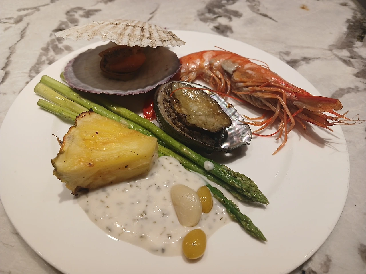 전복버터구이, 다양한 고기구이류, 통밀잡곡빵류에 벌집째 갖다 놓은 천연꿀, 맛보진 못했어도 가장 매력적이었던 다양한 주류 무한리필, 편히 식사집중