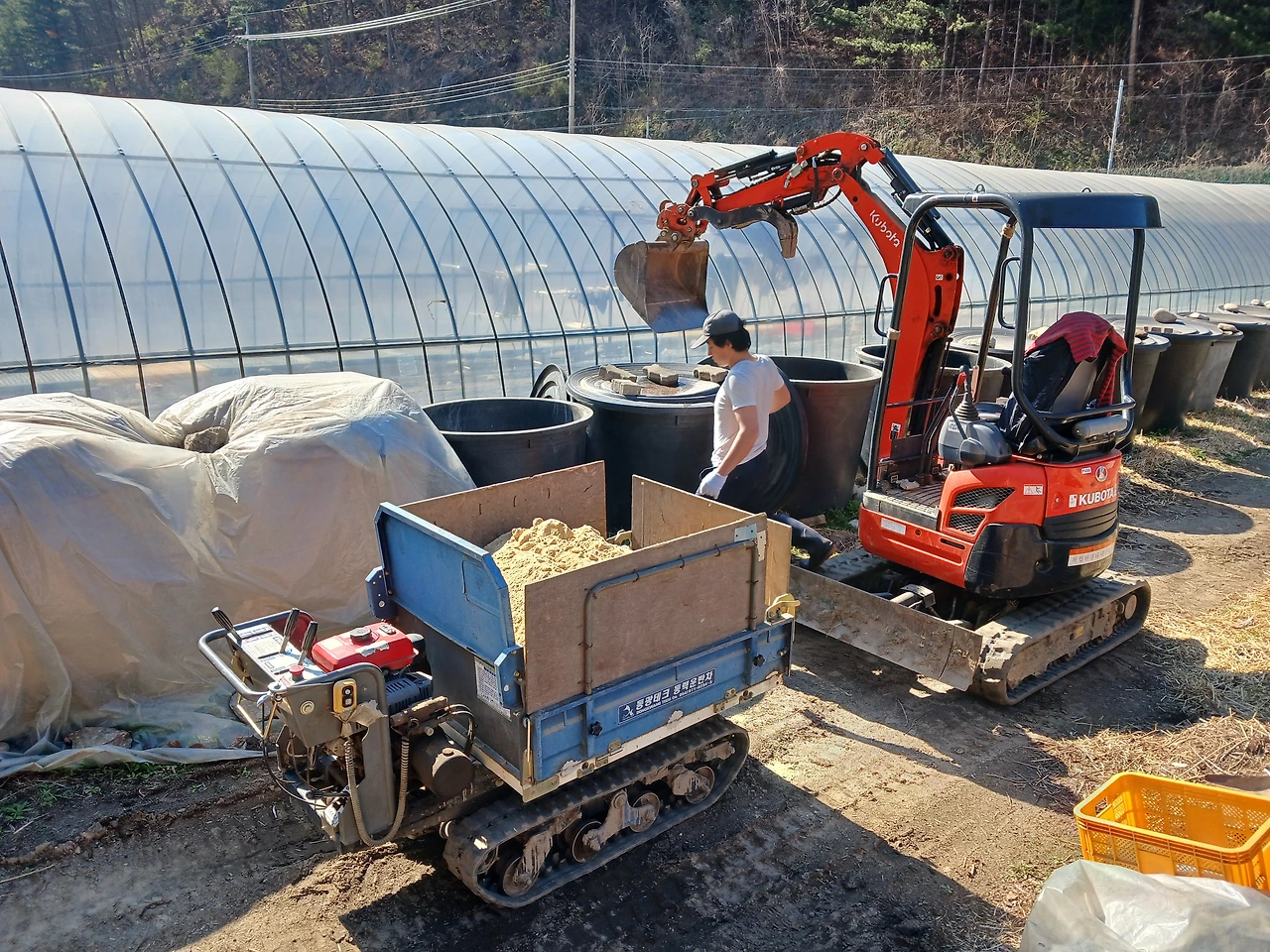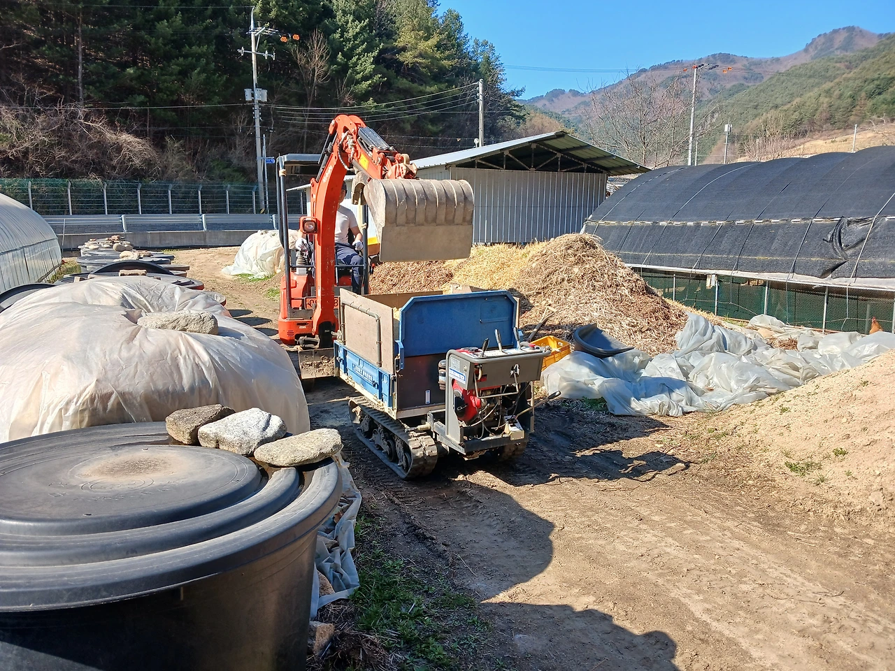 수닭닭장 보수/하우스 월동초 사이/하얀 미니쿠퍼