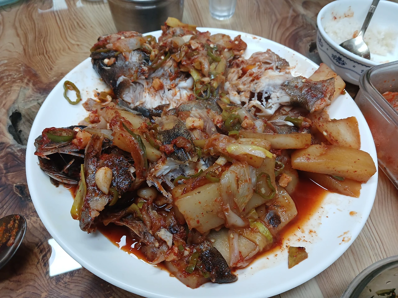 더하기 빼기가 조화를 이루고 생선과 무가 양념장에 잘 졸여져 백밥과 잘 어울러졌다.