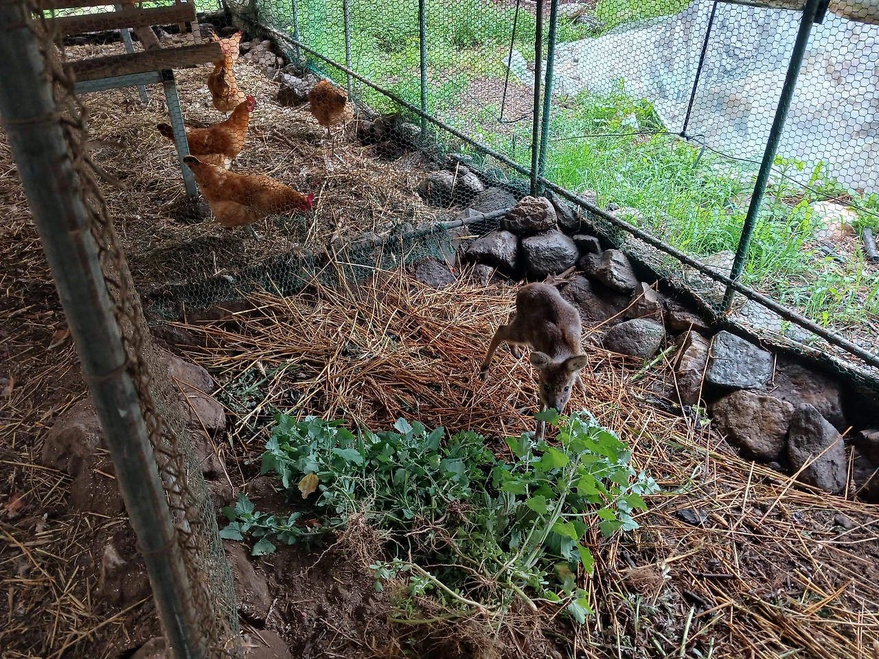 철거가 예정 중인 하우스 닭장(비닐과 차광막도 세월흔적에 제기능을 잃어감)에 새 식구가 들어왔다.