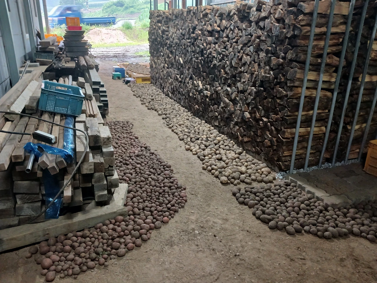 상처 입은 햇감자에 작년 묵은 감자를 저온저장고에서 꺼내와 세척을 한다.