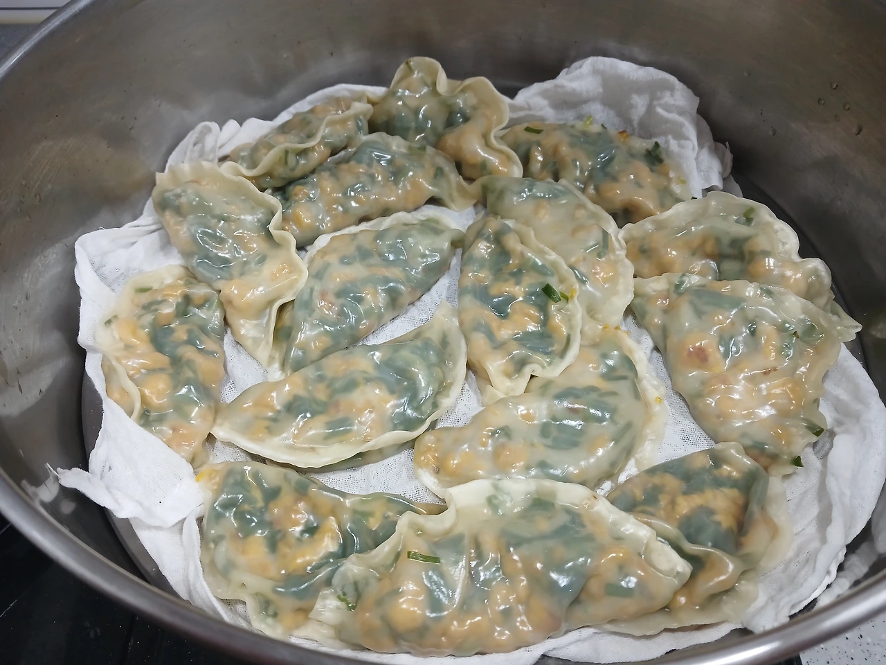 우리밀반죽으로 하면 의미도 있고 더 좋겠어, 부추 계란만으로 어떻게 이런 맛을 내는지 허 참^^"