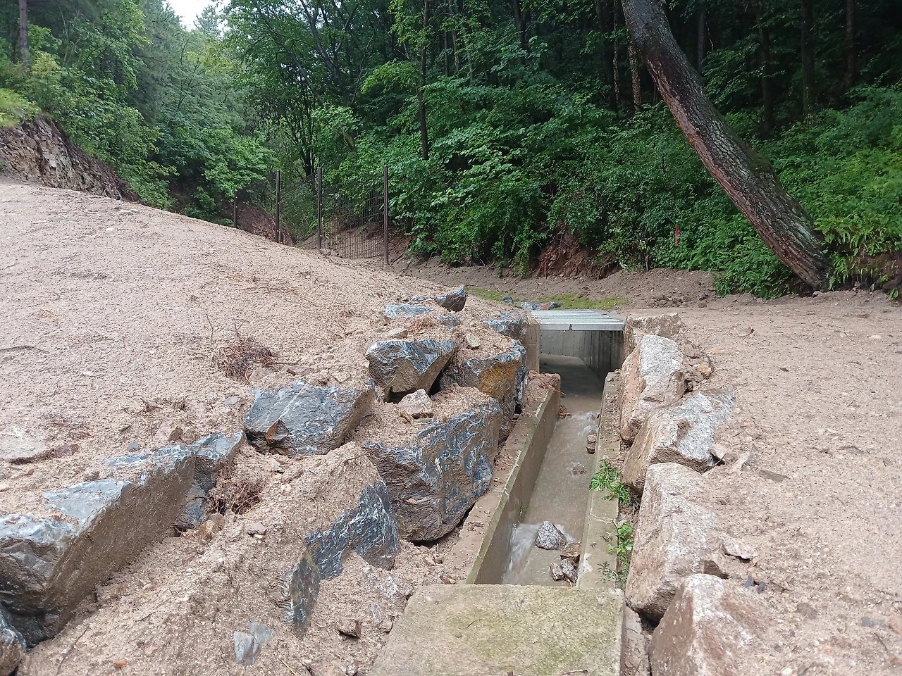 사방댐공사의 옥의 티라 할수 있는데 배수로 초입입구가 좁다.