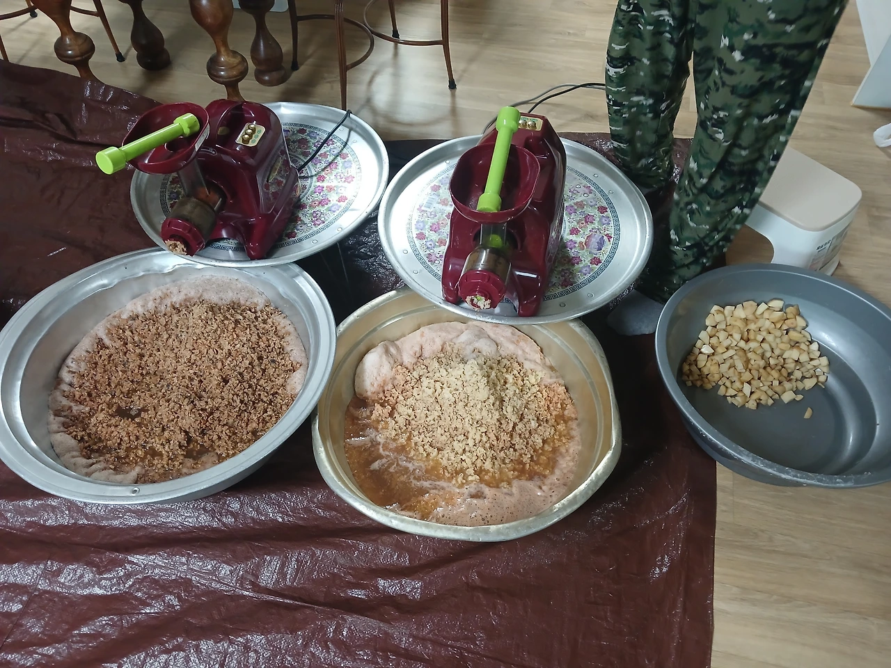 갈때 두가지 방법이 있는데 곱게 갈면 양은 더 나오지만 천에 걸러 짜내야 하는 공정이 복잡해진다.