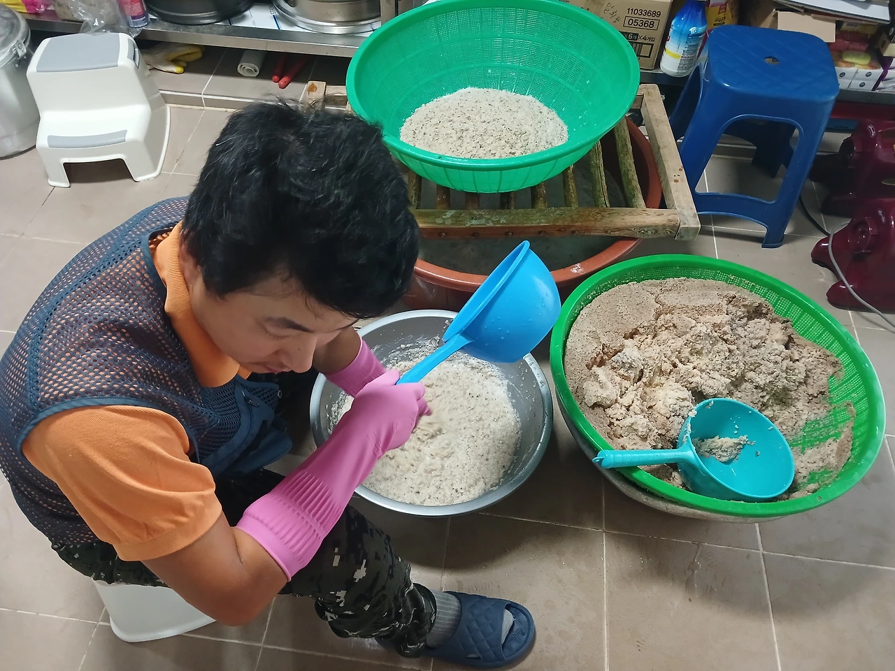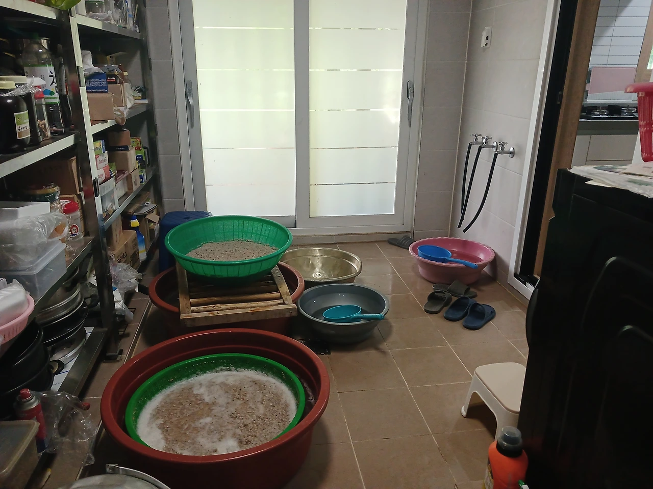감자전분 물갈아주고 새로 채우는걸 동생이 맡아주어 난 필요할때 나무 받침대를 옮겨주면 되었다.