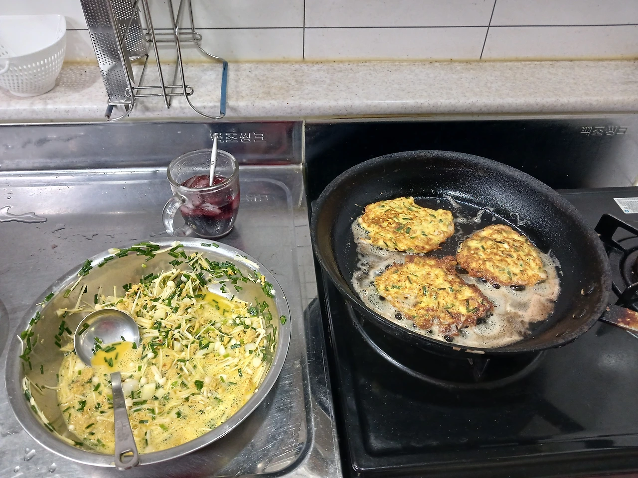 반죽된것이 너무 많이남아 어머니께서 쓸 수 있게 뒷수습을 해주셨었다.