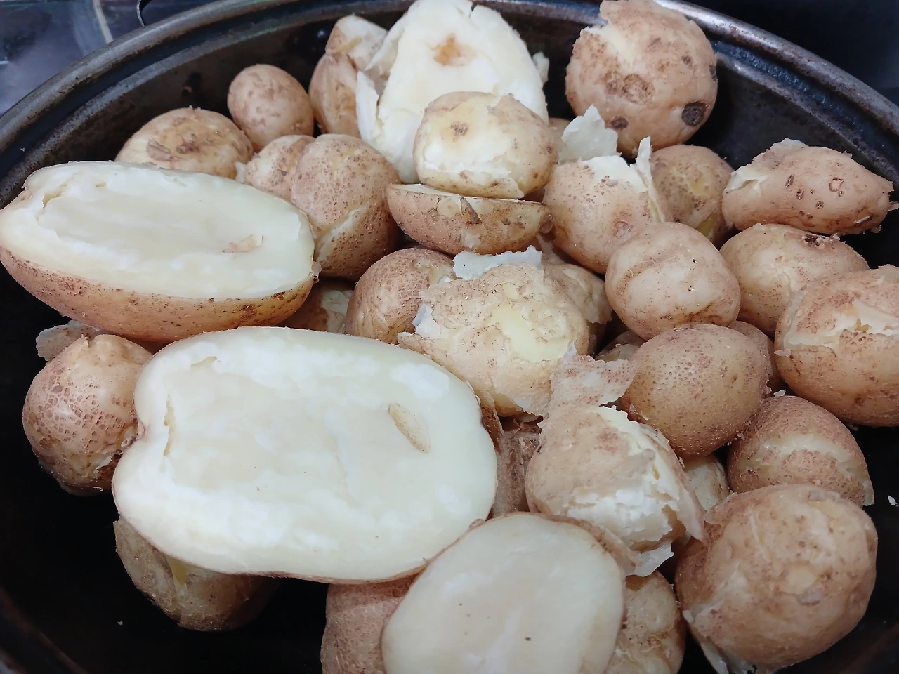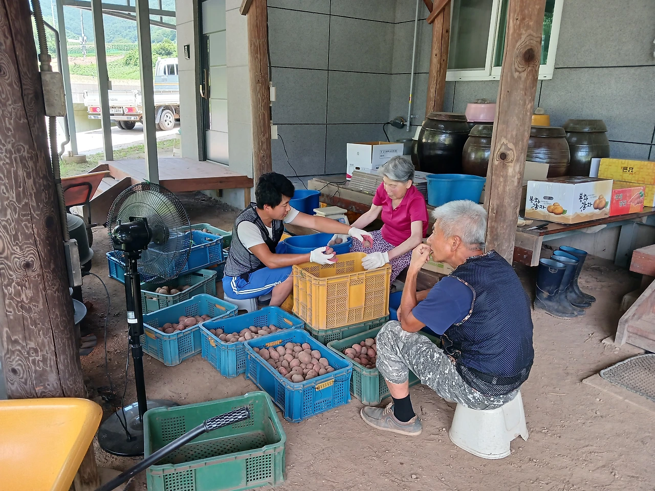 <사진 5>23. 수)'감자 종류별 정리한 것 쌓아둠'_아버지, 나, 동생 (저녁 11시 50분 종료)
