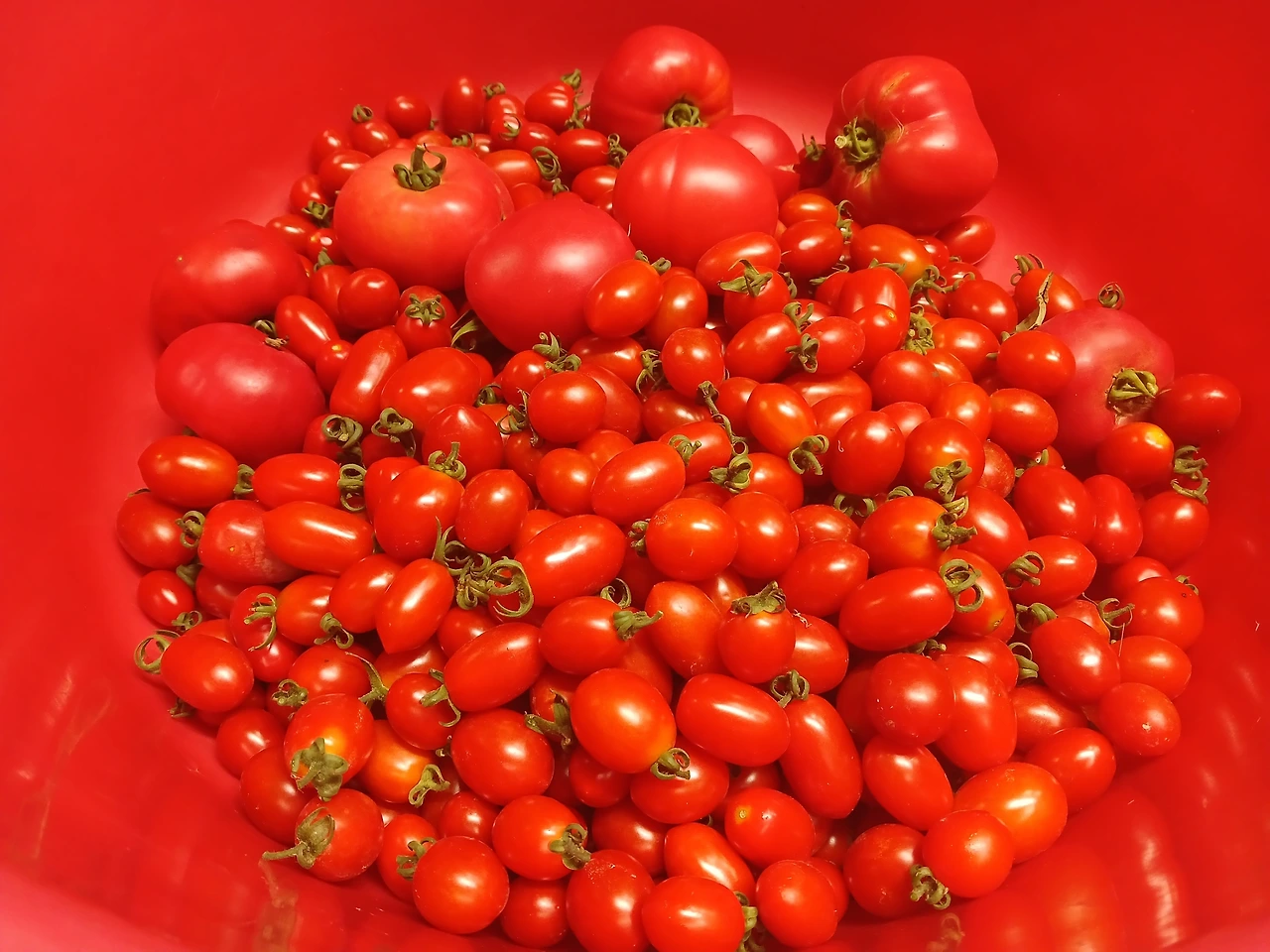 <사진 7>24. 목) '어제 하우스에서 따온 토마토 2가지' (실한 것 골라 단골고객님께 서비스용 포장)