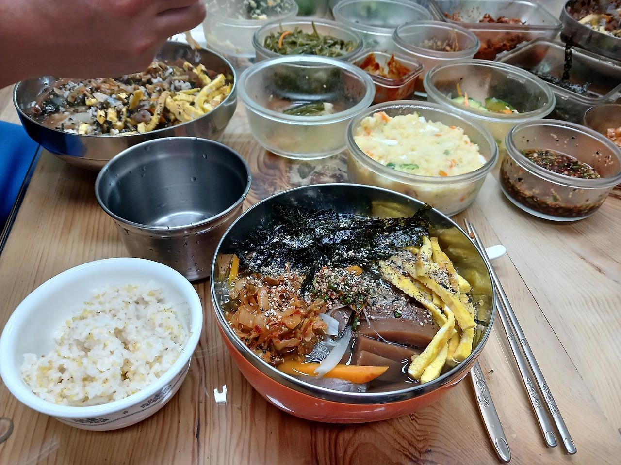 <사진 6> 26. 토) 점심: 수제 도토리묵 쑨 걸로 묵밥을 (탄닌 성분이 콜레스테롤 배출과 체내 독소 제거에 효과적이며, 항산화 작용으로 노화 방지에도 도움을 준다._구글 AL)