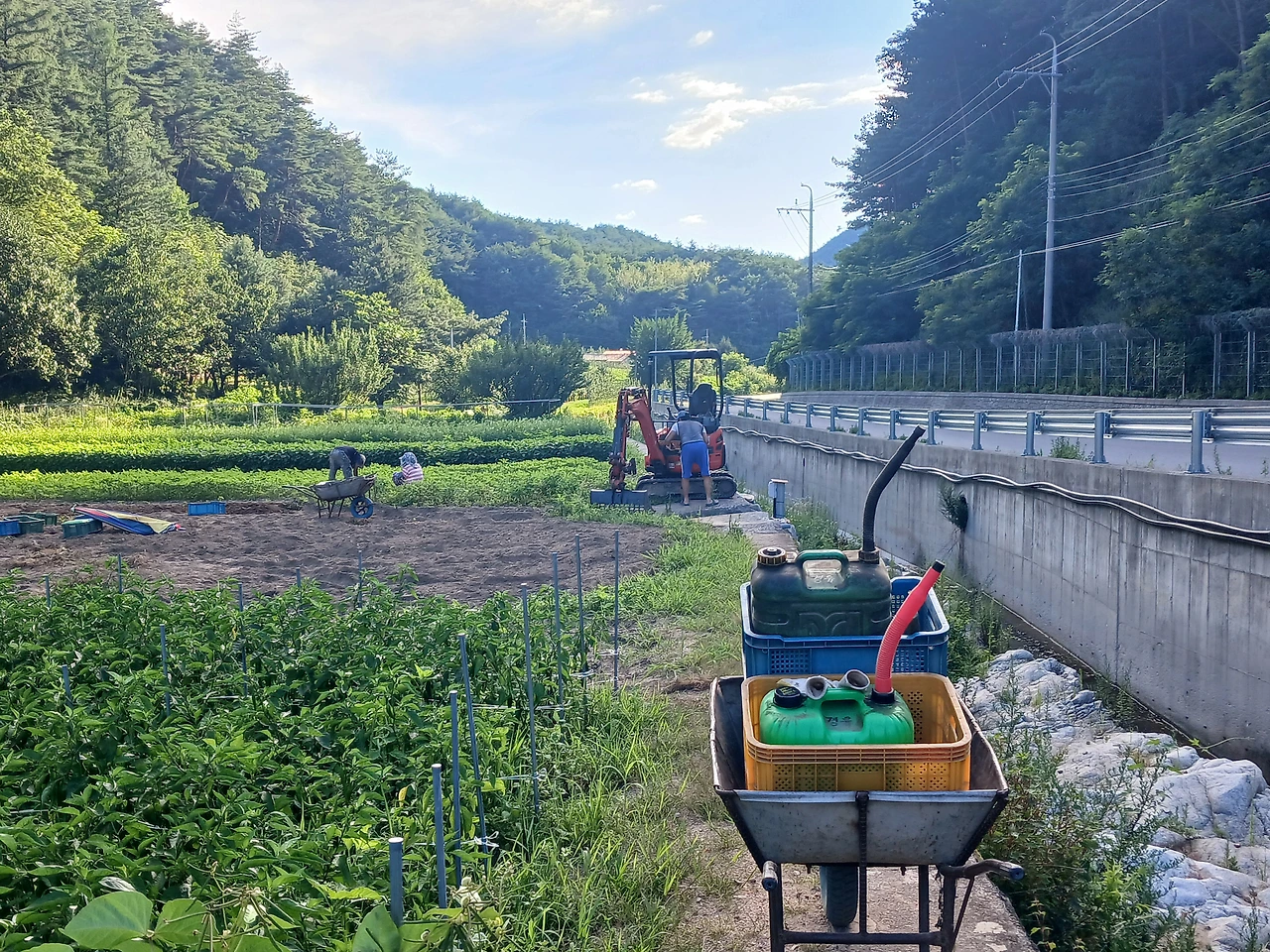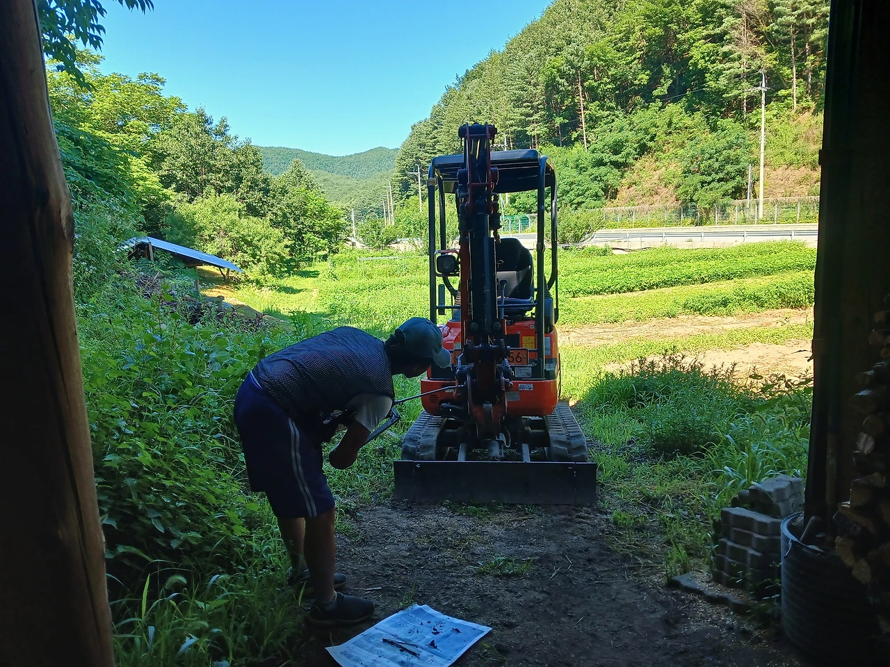 <사진 1> 25. 금) 오전 일찍 동생과 포클레인 정비 (360도 구리스는 나중에)