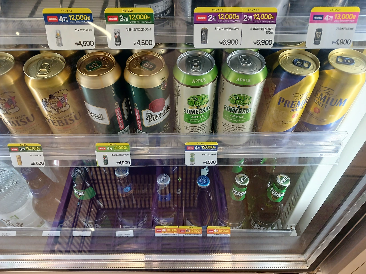 <사진 13> 26. 토) 주문한 치킨도 찾기 전 편의점 들림 (맥주 8병 구입)