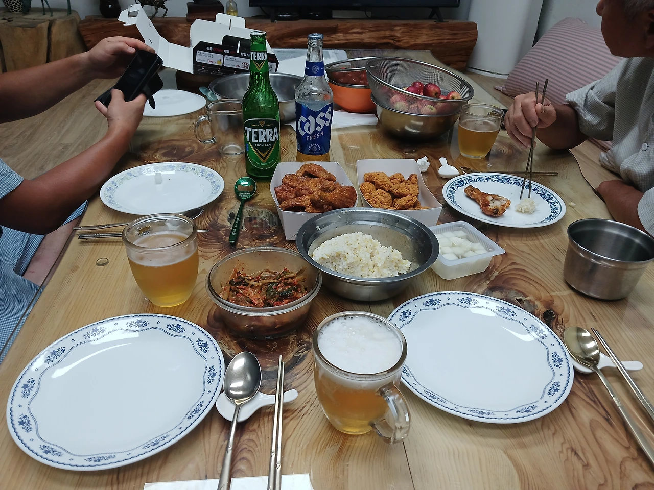 <사진 14> 26. 토) 둘이 먹기엔 호식이 2마리 치킨이 많다 하여 오늘만 저녁 안 먹는 것 중단, 맥주도 1잔/그간 고생 서로 격려)