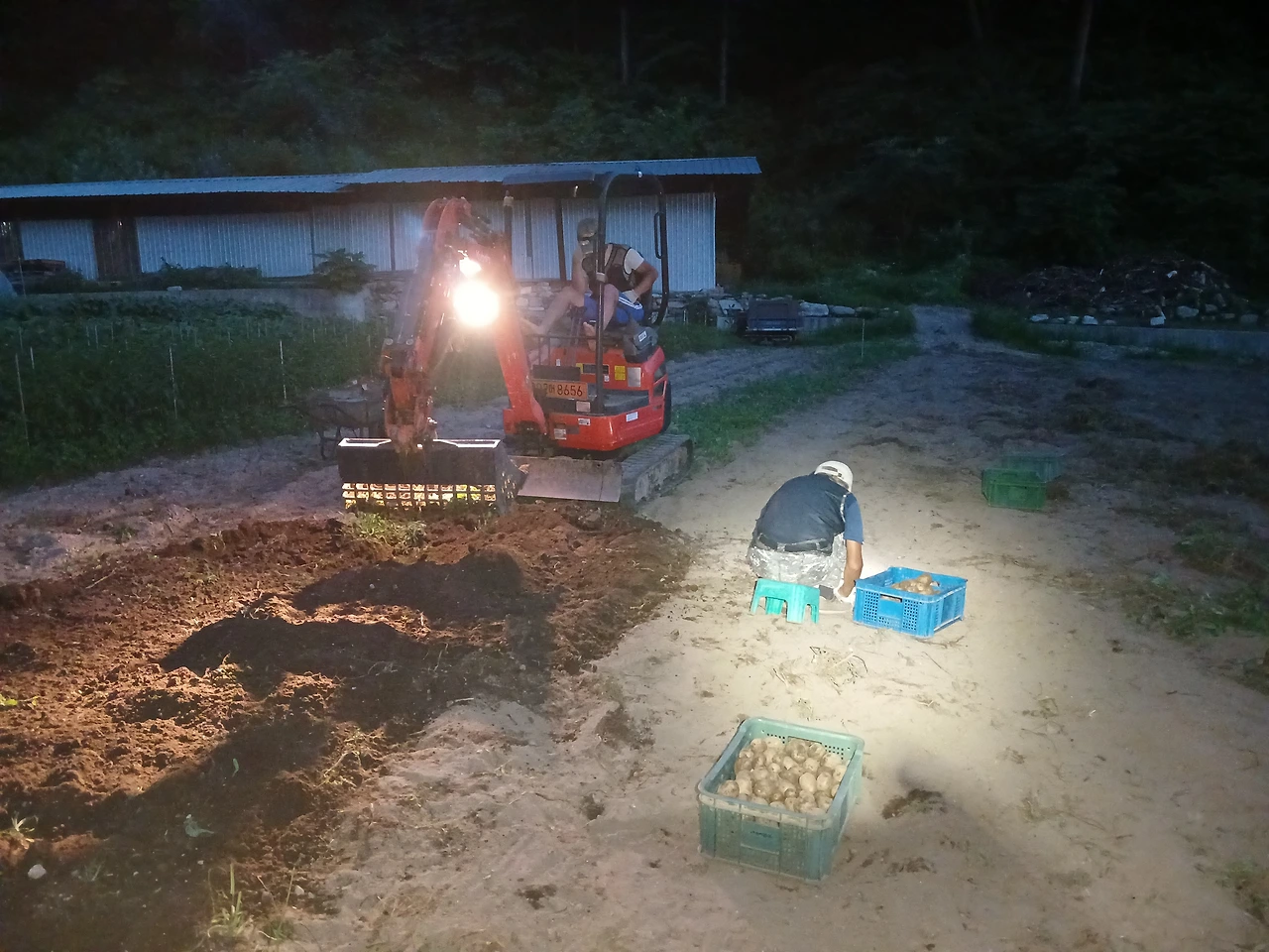 <사진 7> 26. 토) 전날 오후 9시 넘어까지 플래시에 달려드는 날벌레들 견디며 감자 캔 다음날