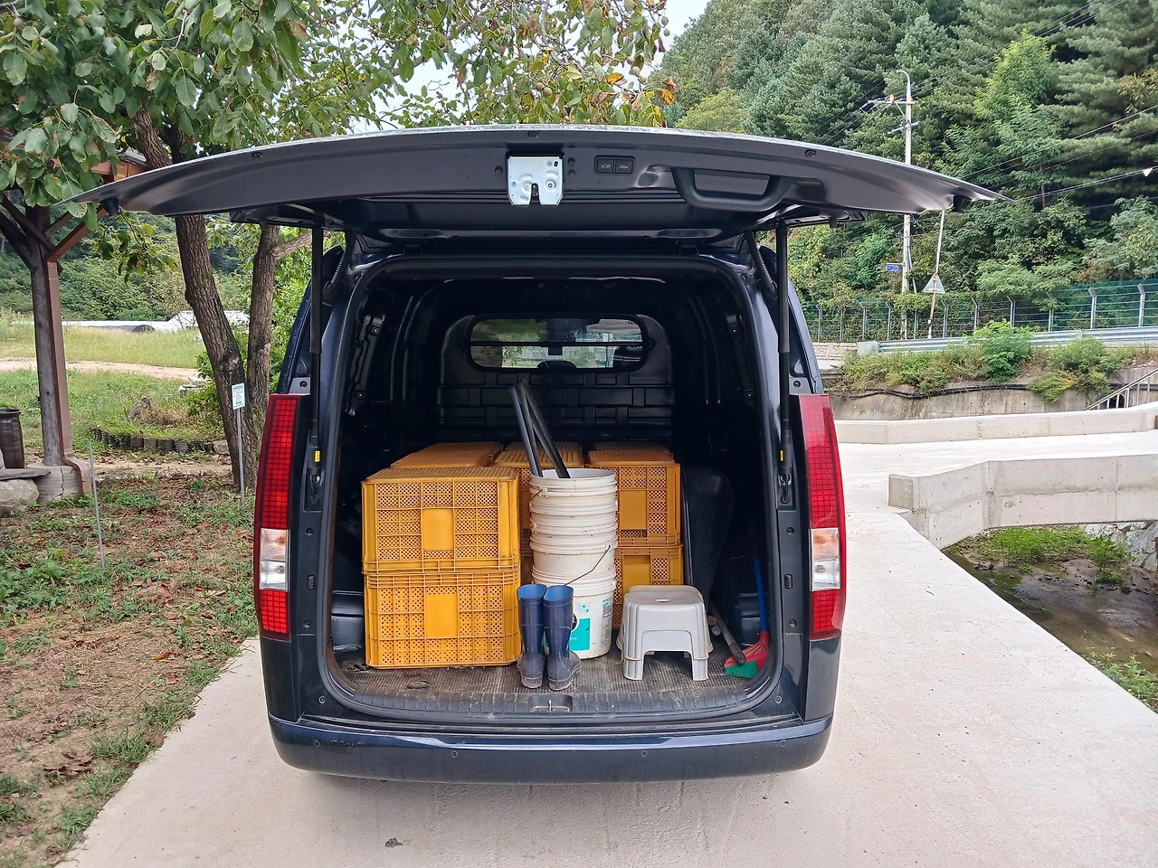 전에 내가 차를 긁어먹어 흠집을 낸 짙은 푸른색 스타리아는 즐거운 가족여행 때