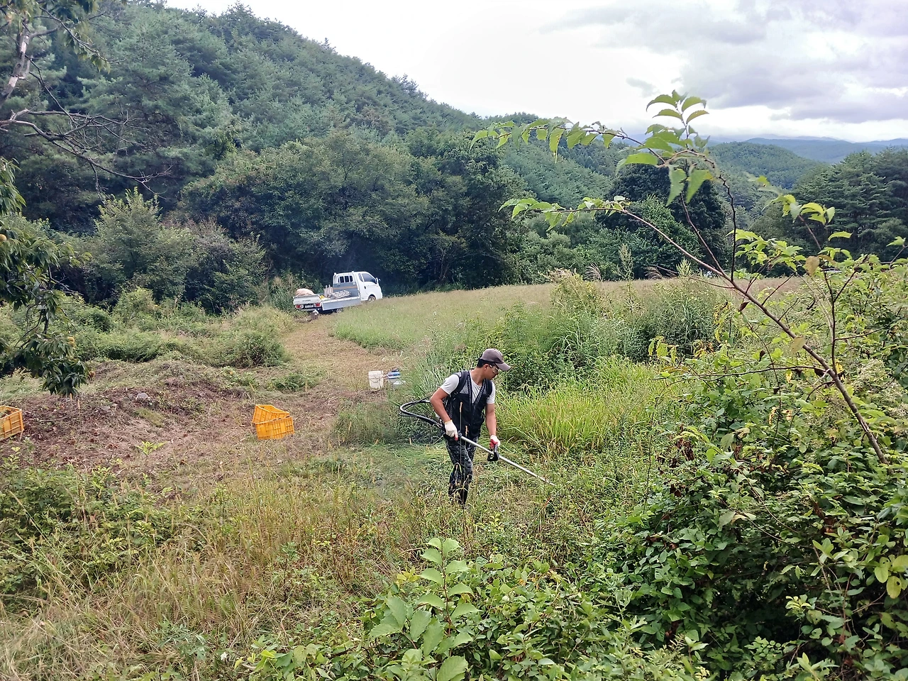 임대해 온 트랙터로 산으로 묵어가는 걸 방지해 주는일 등등 아침 일찍 가서 최대한 늦게 오는 것이