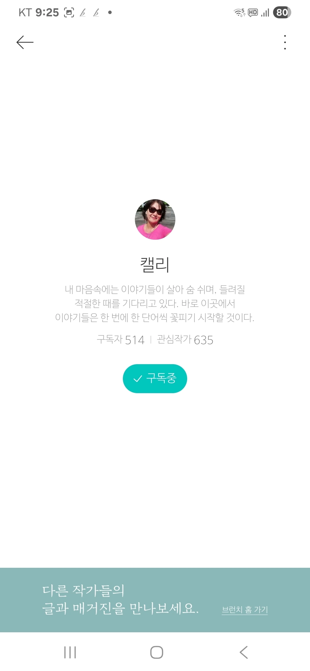 캘리 님은 브런치정식 작가가 맞을까?