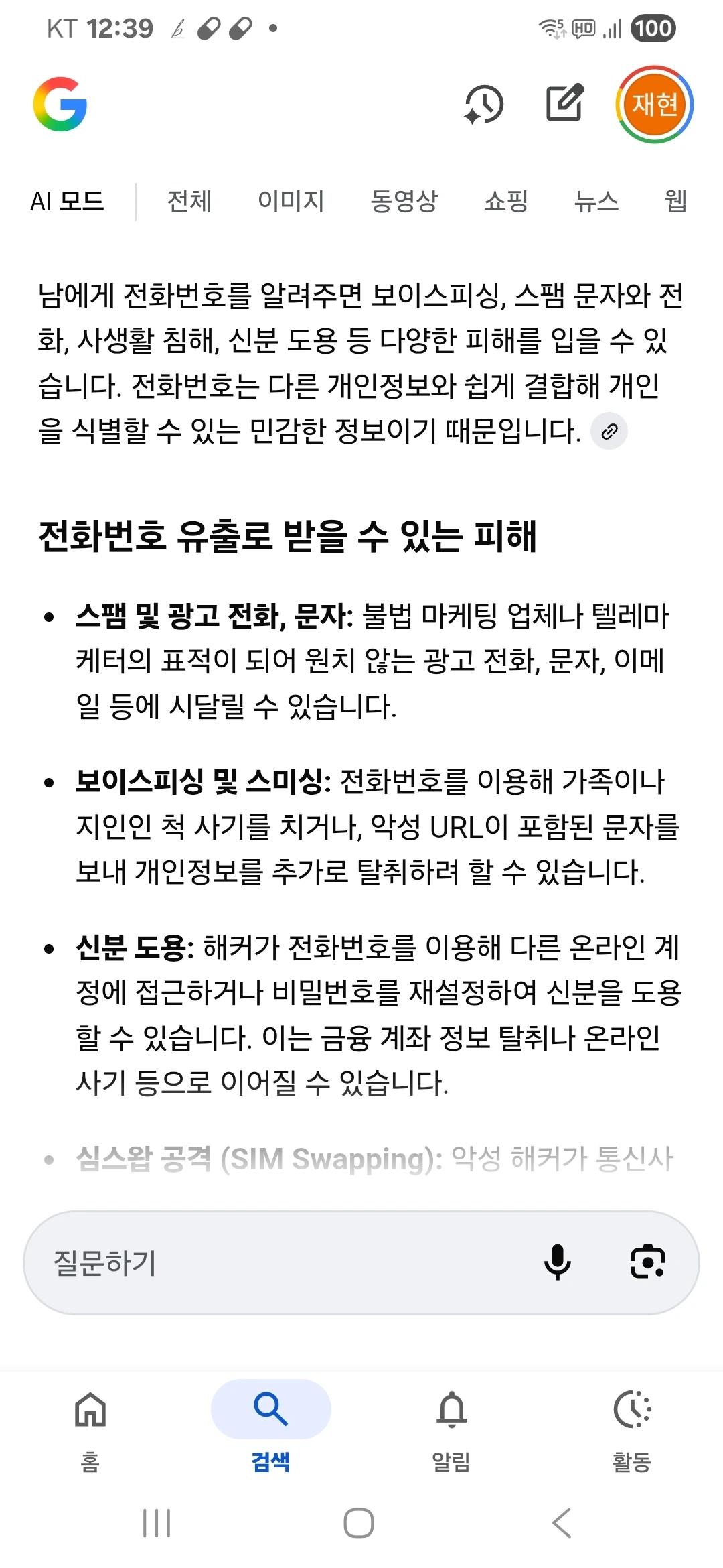 '왓츠앱'을 깔고 전화번호를 가르쳐 달라 유도하는데