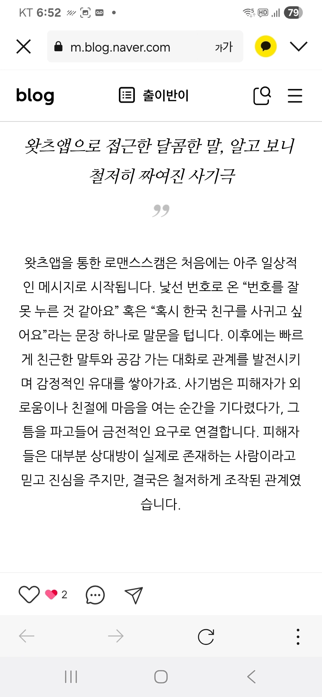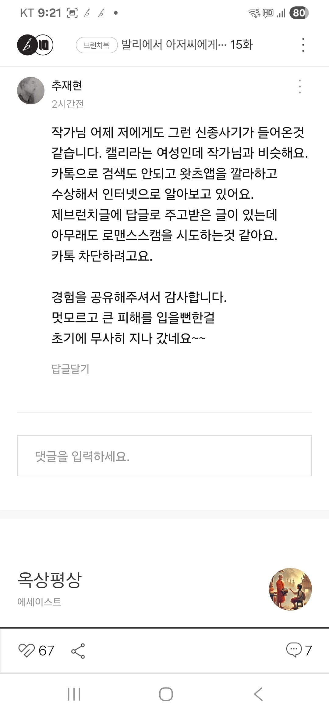 요약하자면 제가 브런치를 통한 로맨스스캠 시도를