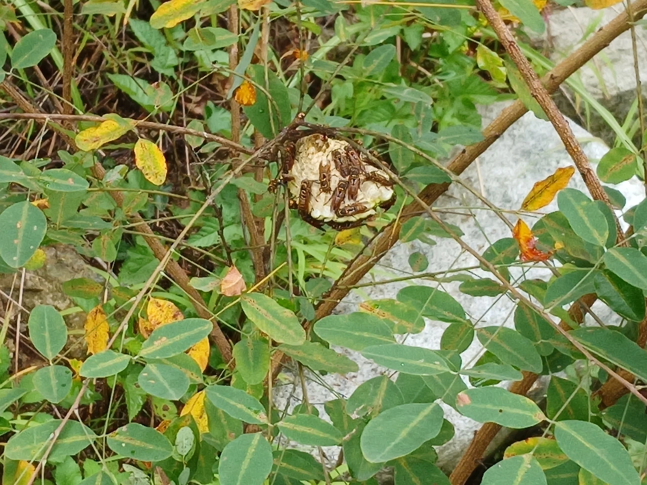 올해 늦게까지 고온다습한 환경이 지속되니 산에 풀자라는 속도는 빠르고 벌집이 수풀에