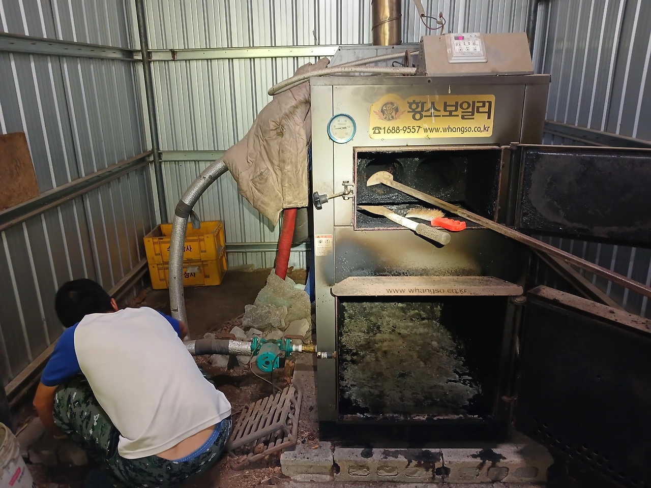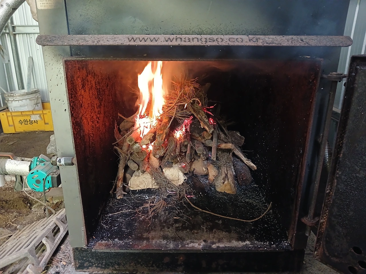5년이 되어가는 '황소화목보일러'청소를 하고 군불을 지폈다.