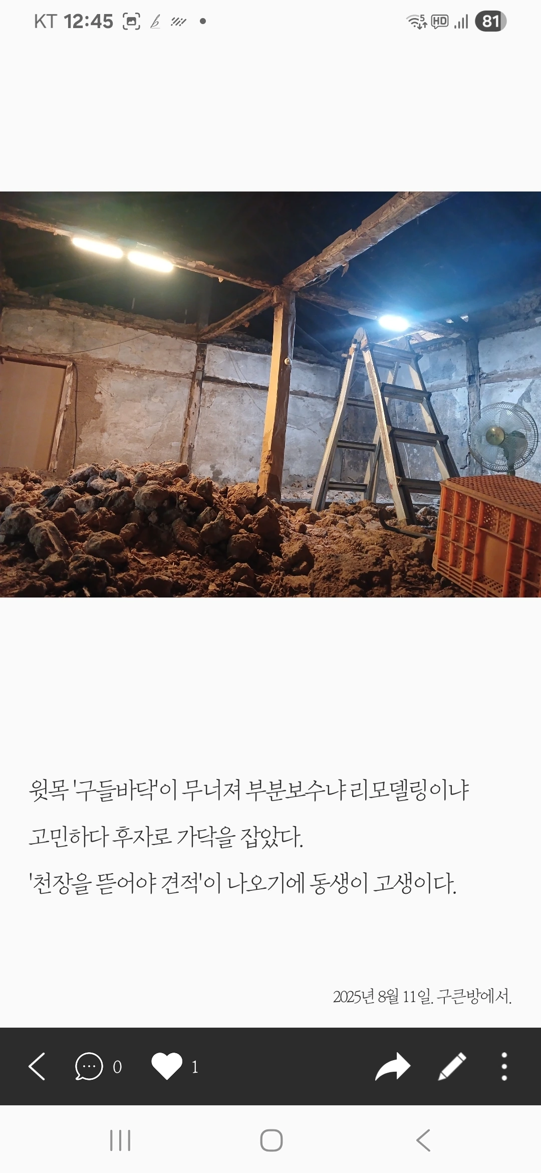 '옛날 황토방 세월 무게에 휘청, 업자분과 함께 리모델링 예정'