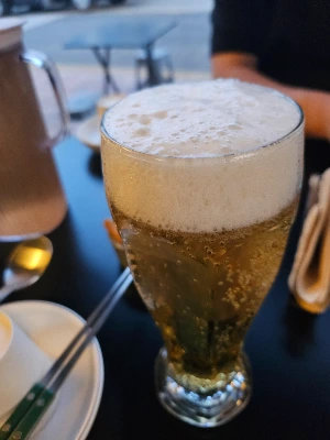 차가운 맥주 한 모금을 마신다.