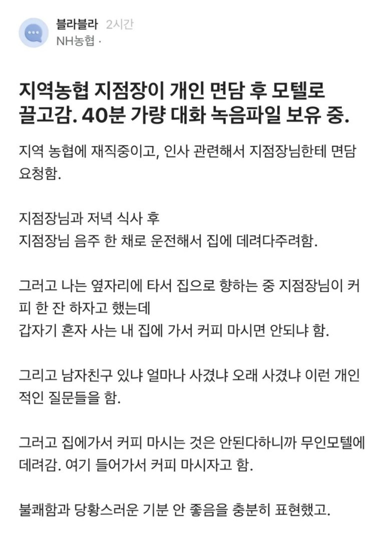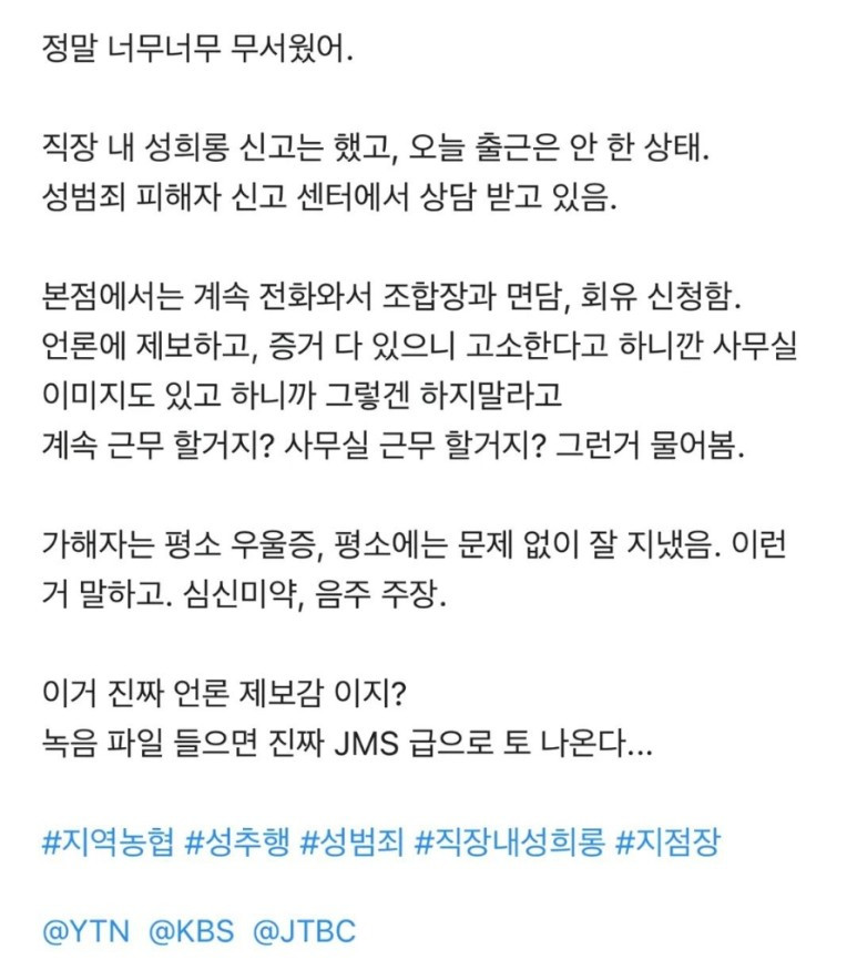 친한 직원들 소수가 모여있는 단체 카톡방에서 알람이 울렸다. 확인하니 타 농협에 계시는 직원본이 기사 링크를 올려두었다. 큰 내용은 아래와 같다.