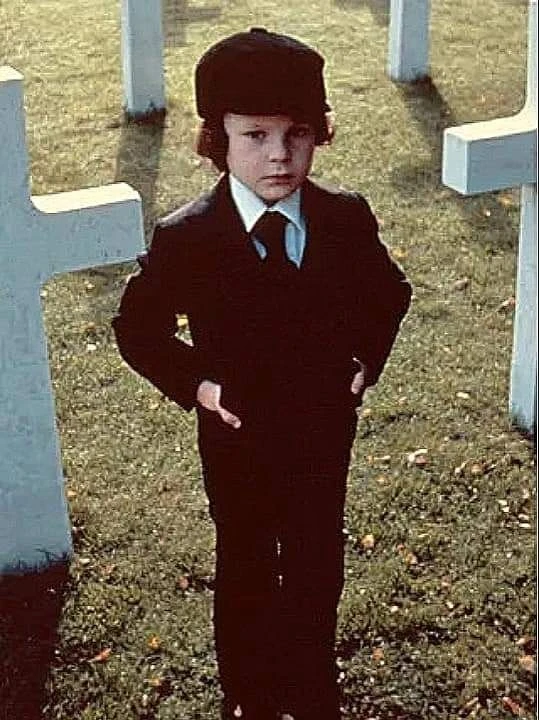 어린 데미안은 아버지의 장례식장에서 악마의 자식이라는 것이 믿기지 않을 순수한 모습을 한 채