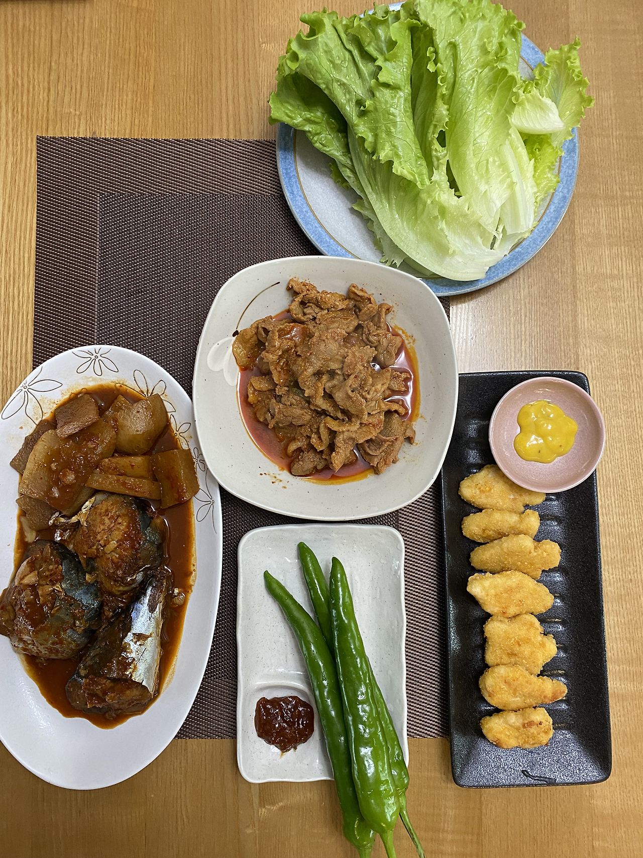 사춘기 아들이 신기하게 좋아하는 고등어무조림. 양념이 잘 스며든 매콤달콤한 무우가 맛있다고 한다. 건강밥상을 차리면서 치킨너겟은 웬말이냐..^^