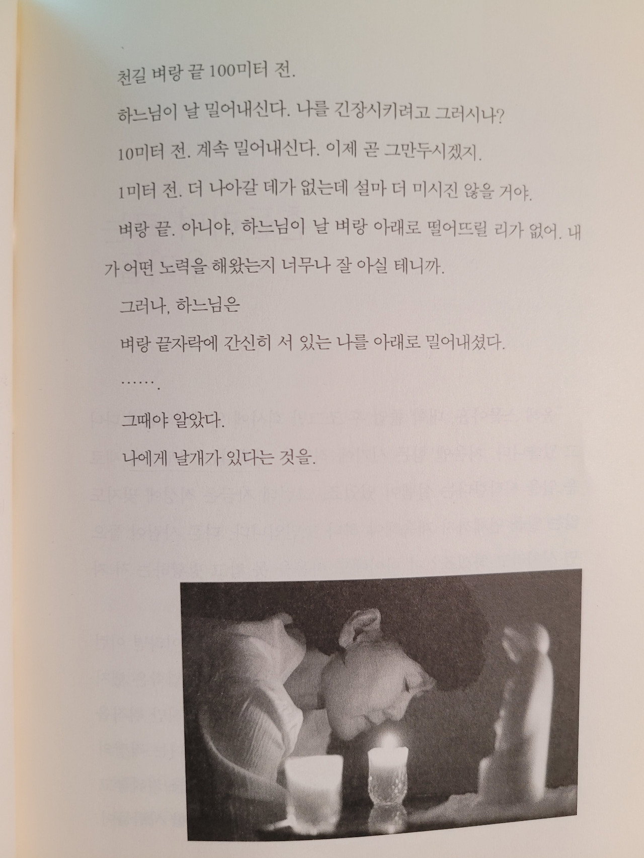 벼랑 끝. 아니야. 하느님이 날 벼랑 아래로 떨어뜨릴 리가 없어. 내가 어떤 노력을 해왔는지 너무나 잘 아실 테니까.