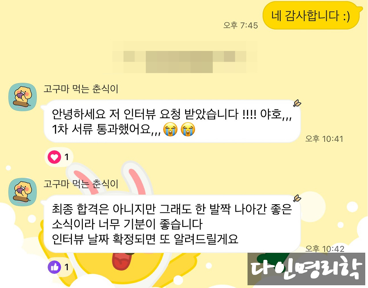 그리고 또 두 달이 흘러 얼마 전에 최종 합격 소식을 들었다.