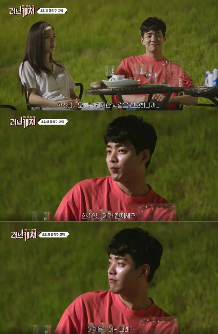 이번에도 리얼리티 연애 예능 프로그램인데 사랑과 돈 중 무엇을 선택할지 고르는 ‘러브 캐처 1’의 한 장면입니다. 여성 출연자의 돌직구 발언이 인상 깊은데요. 여성 출연자 한초임과 남성 출연자 이채운의 대화 장면을 한번 봐보세요.