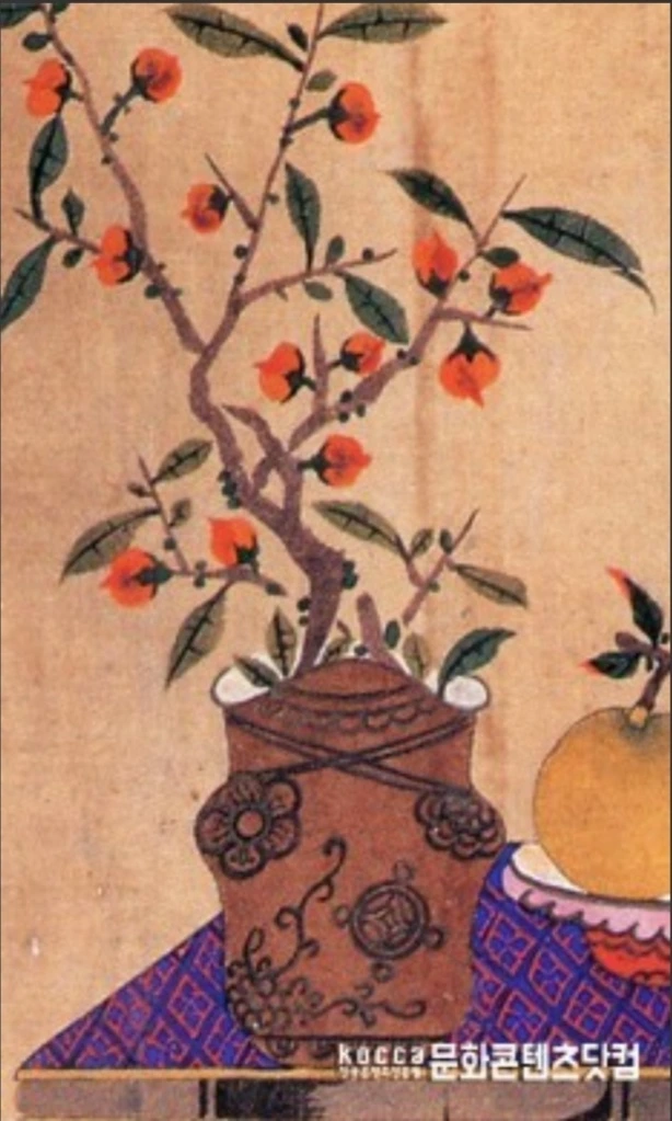책거리 그림에 등장한 화병에 꽂은 감-호암미술관 소장