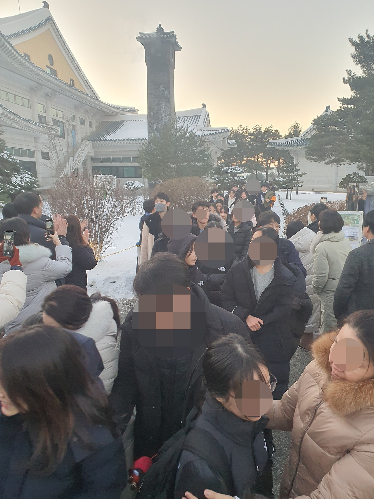 방문객을 향해 공손하게 인사하는 재학생들의 한복이라도 뺏어 입을 기색이었다.