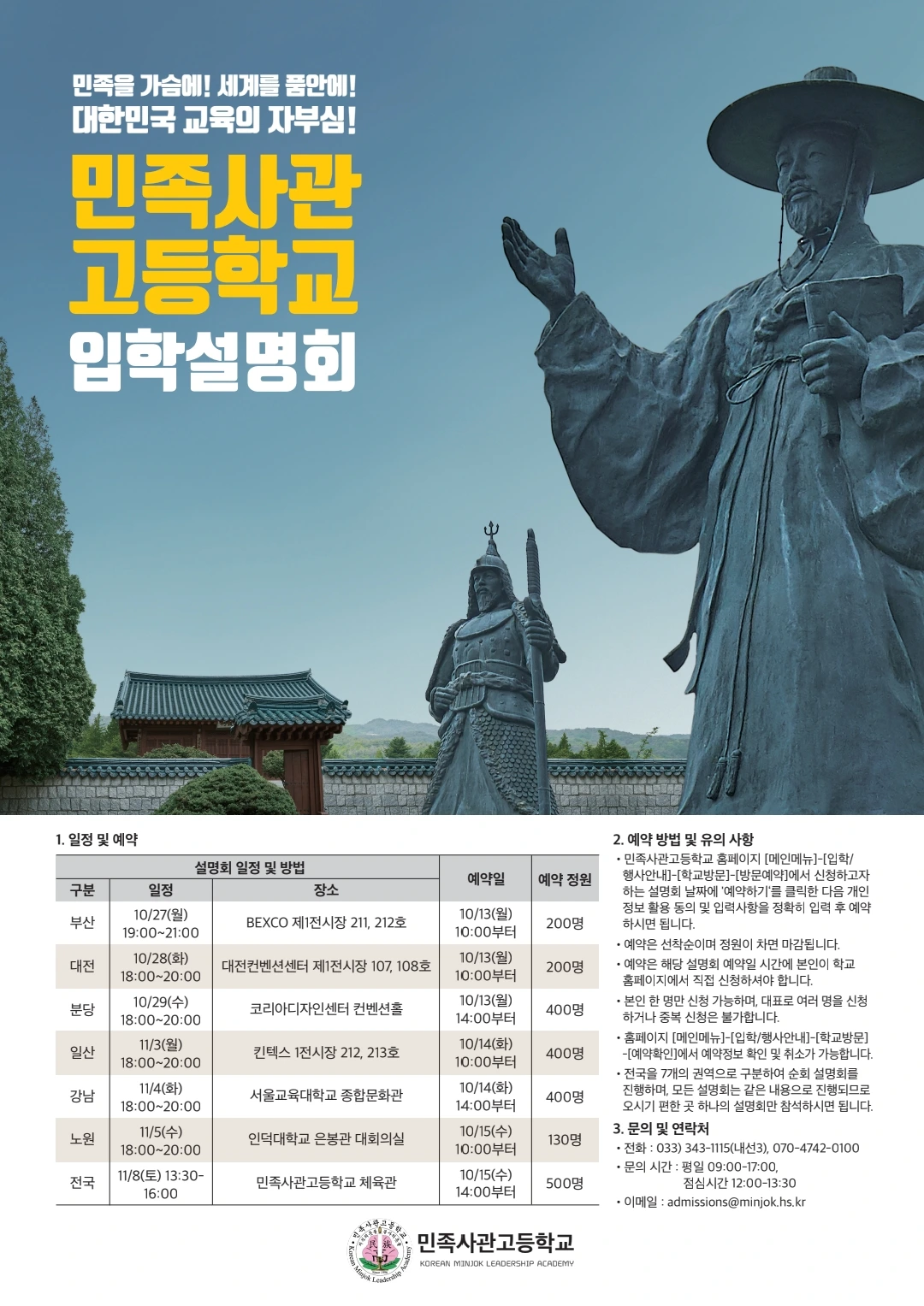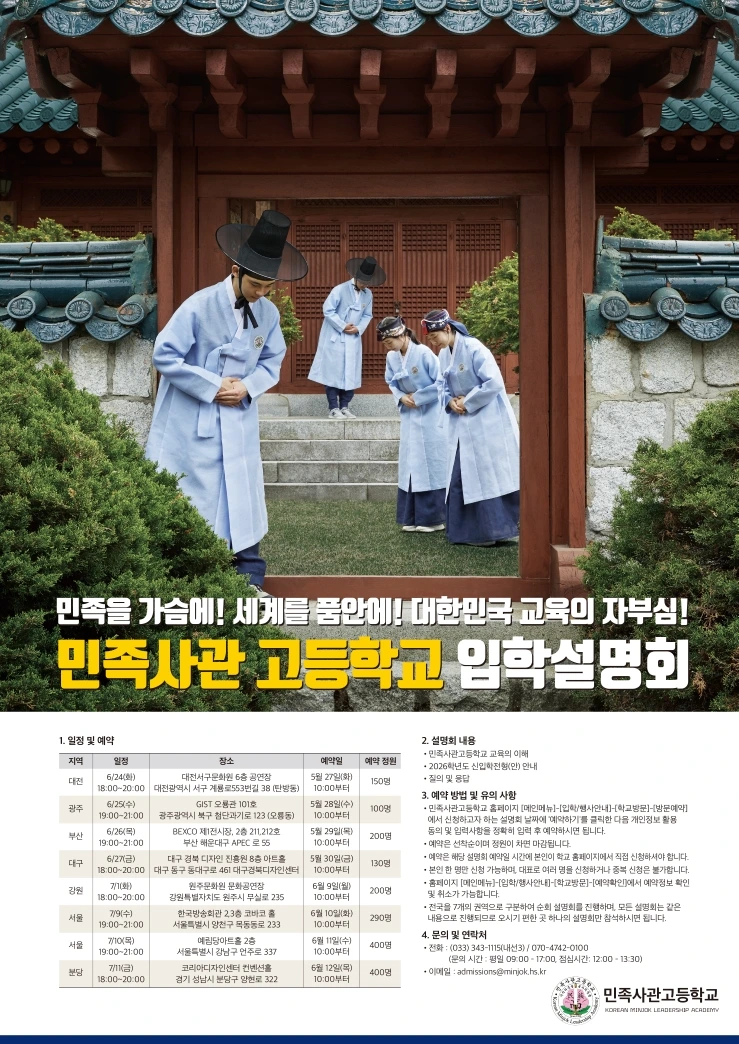 민사고는 1학기와 2학기에 각각 입학설명회를 진행한다.