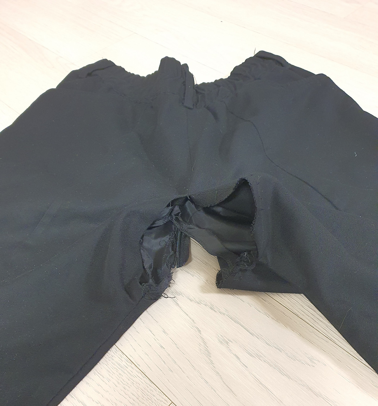 그래, 구멍 나고 지퍼마저 상했으니 입어볼 수 없었?!