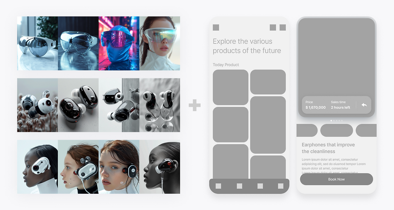 미드저니라 미래 이미지를 잘 만들 거라고 상상하기도 했고, 이번에 연습 겸 이미지 프롬프트는 없이 진행해서 이어폰의 형태가 그다지 이쁘지만은 않다. 확실히 참고할 수 있는 이미지 프롬프트를 함께 사용해야 원하는 느낌을 빠르게 도출할 수 있는 거 같다.
