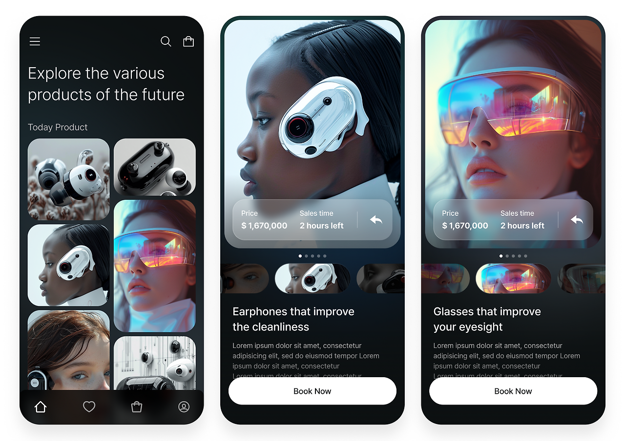 첫 번째 디자인은 미래에 사용할법한 스마트 디바이스를 확인하고 구매할 수 있는 서비스를 디자인해 봤다.