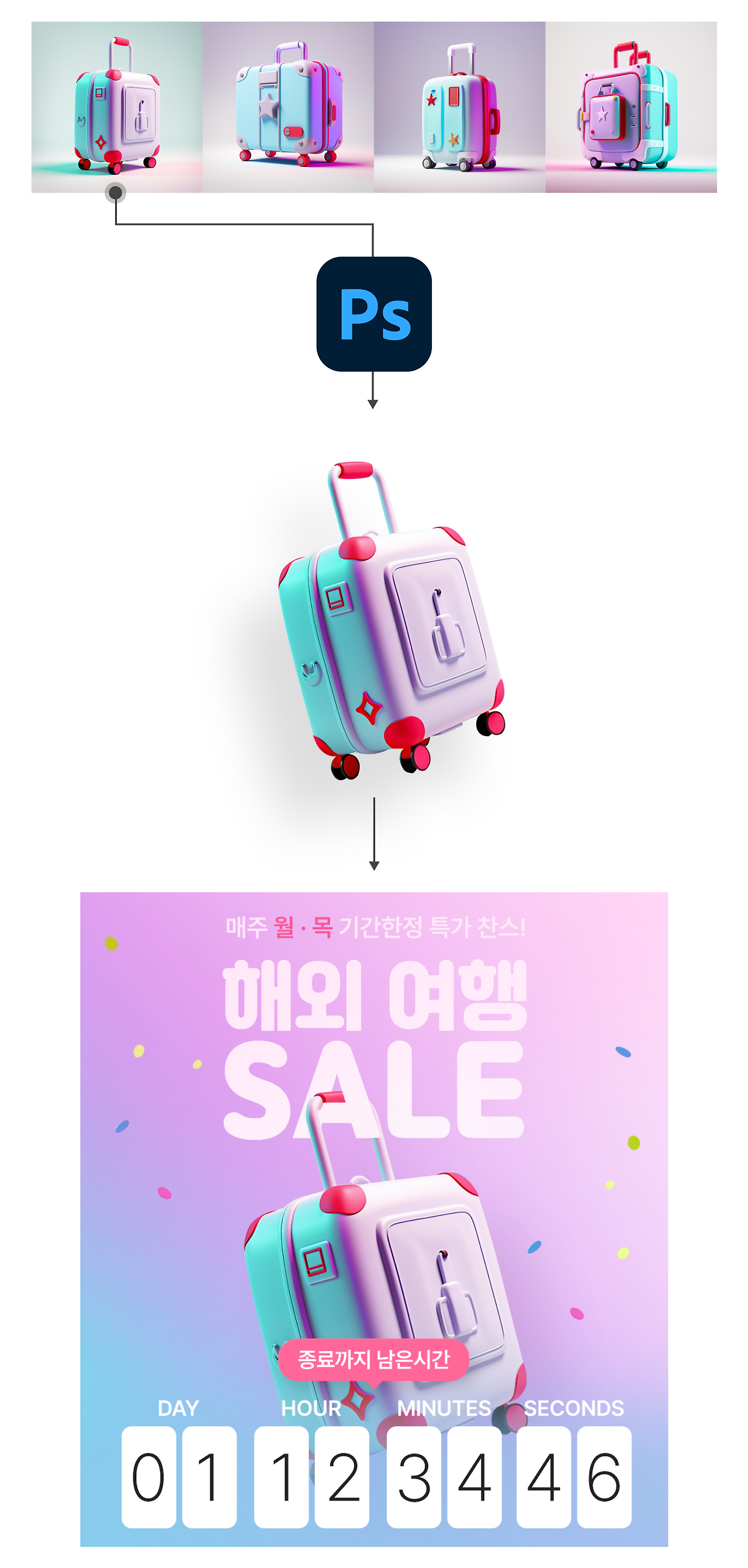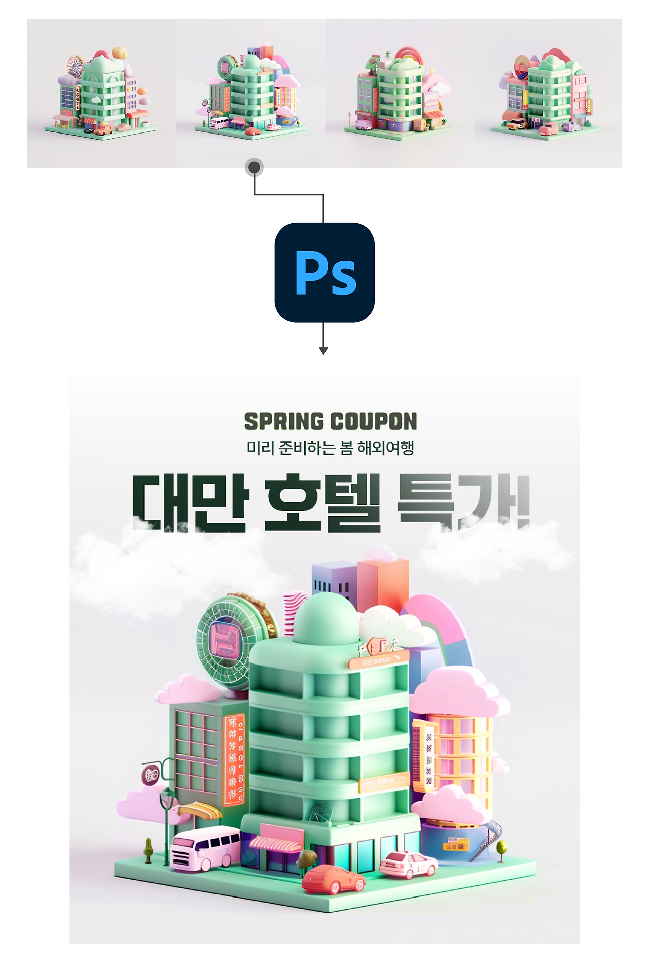 도출한 이미지 중 1번 이미지를 선택해 업스케일 후 포토샵에서 보정과 배너 디자인을 진행한 결과물