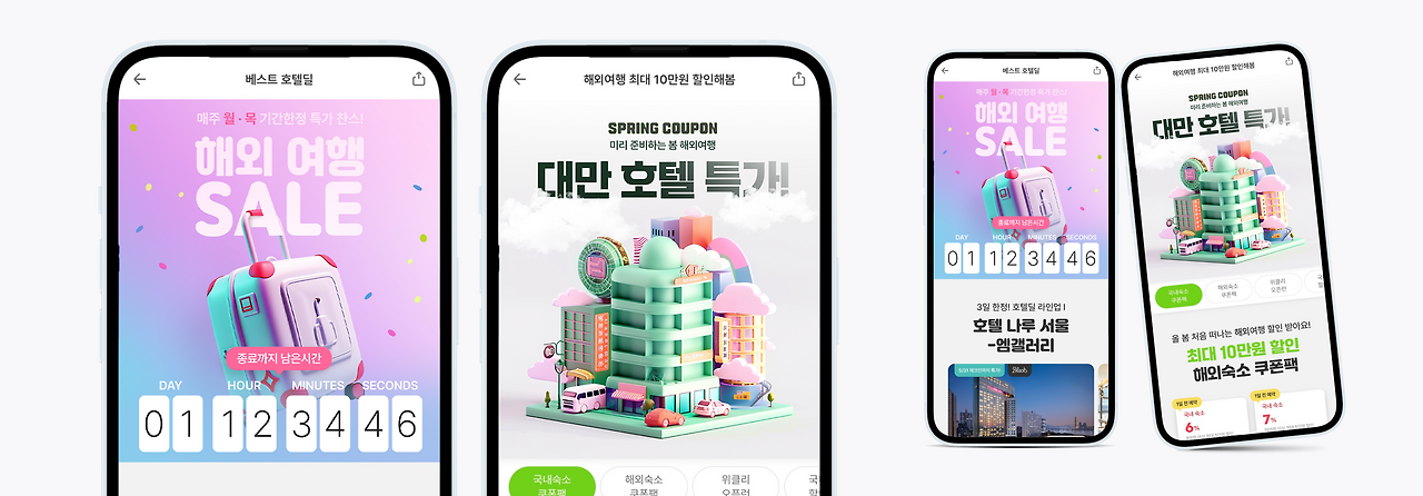 여기어때에서 현재 진행 중인 프로모션에 들어가는 그래픽을 만들기 위해 도출한 이미지들은 다음과 같다.