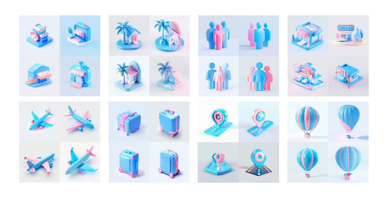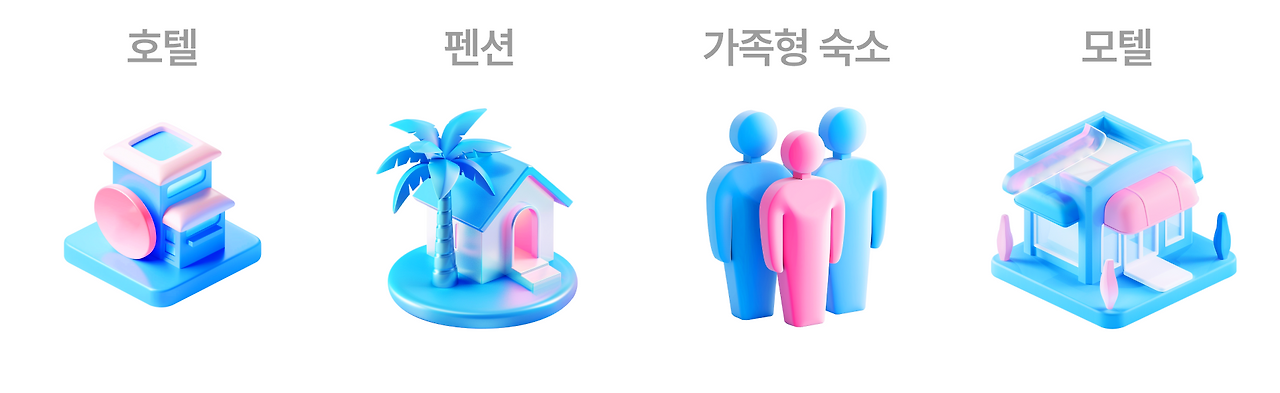 해당 그래픽 에셋을 보면서 아이소메트릭의 3D 그래픽도 미드저니를 활용해 제작할 수 있을까 생각이 들어 이번에 미드저니를 활용해 야놀자의 그래픽 에셋을 대체해 보았다.