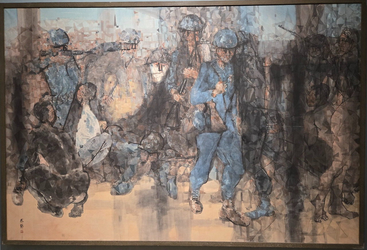 <전우>는 오태학이 군에 입대한 후 그린 작품으로, 선과 면이 복잡하게 얽히고