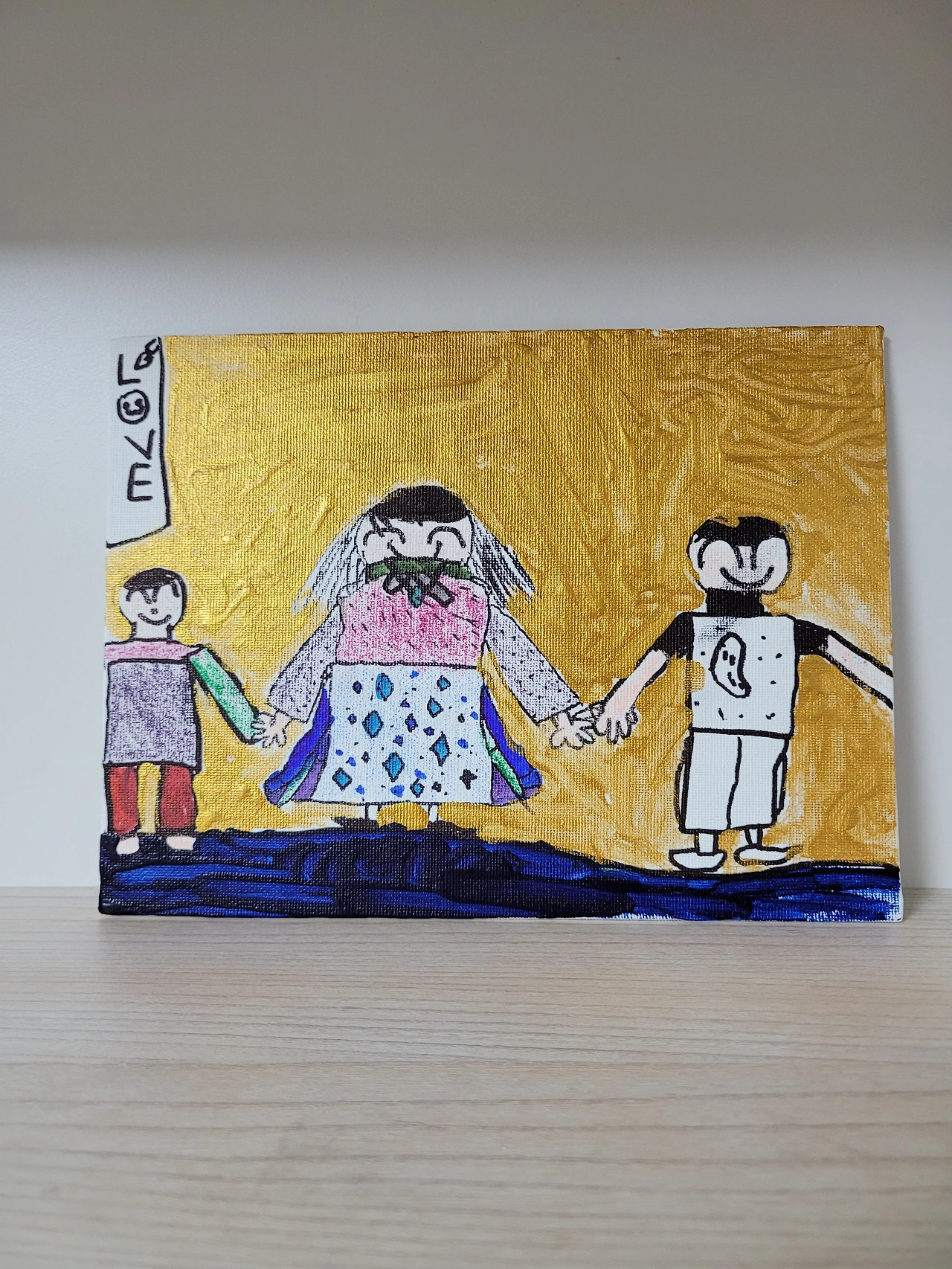 낯선 친구들 사이로 쭈뼛쭈뼛 들어가 자리에 앉는 아이. 이따 데리러 온다는 눈인사를 하고 헤어졌다. 한 시간 후 데리러 갔더니 미술학원 선생님께서 아이가 완성한 작품을 보여주며 말씀하셨다.