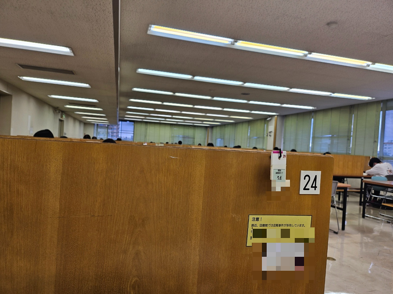 조용하고 깔끔한 동네 도서관 열람실. 자리를 잡는 것도 아날로그스럽다.