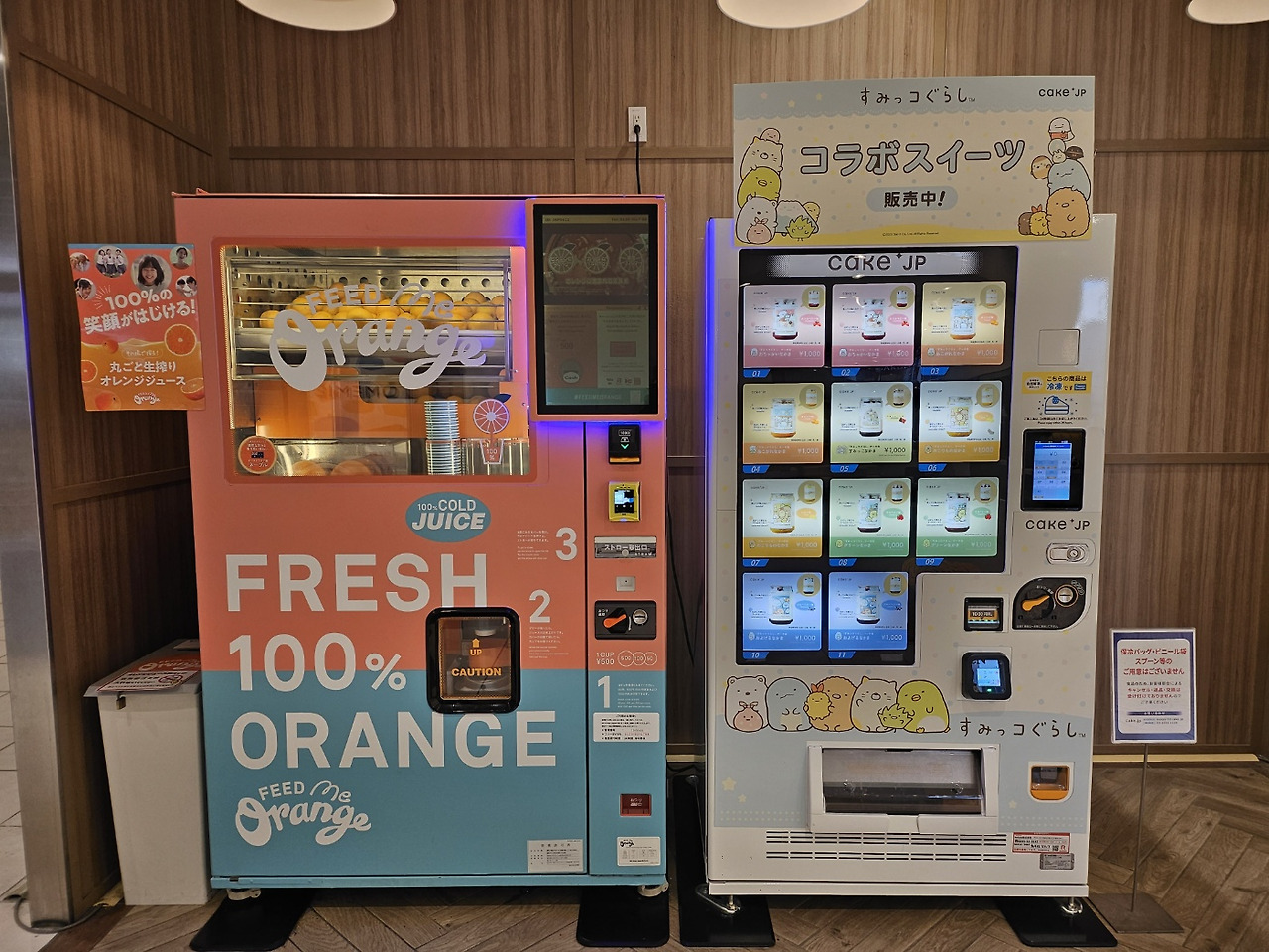 지나갈 때마다 오렌지 냄새가 공기를 가득 메운다. 진짜 오렌지 주스 자판지와 컵케이크 자판기.