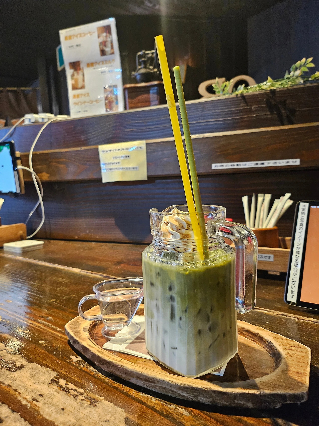 단점은 영업시간이 짧은 편이다(일본의 개인 카페는 웬만하면 11시, 12시쯤 오픈해서 저녁 5시, 6시에 닫더라...). 그리고 달달한 말차라떼 덕후로서 치명적이었던 단점은 '전혀 달지 않은' 말차라떼라는 점이다. 주문 시 시럽을 요청하면 넣어주는 것 같기는 하다.